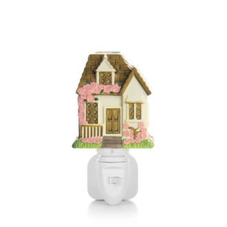 Punto de luz con pantalla en base de porcelana pintada a mano. Incorpora recipiente de cristal para esencias aromáticas.